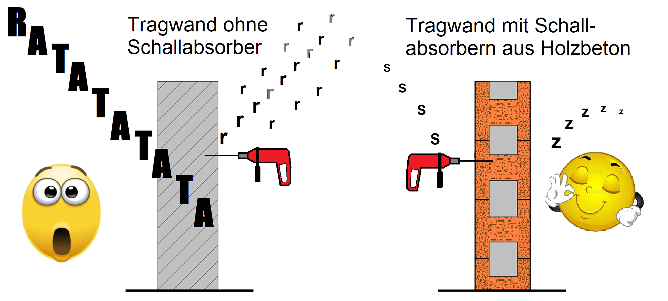 Luftporen, wie sie im haufigen Holzbeton aufgrund des Produktionsverfahrens entstehen, nutzen der Schallabsorption an Lärmquellen ohne Abnutzungserscheinungen.